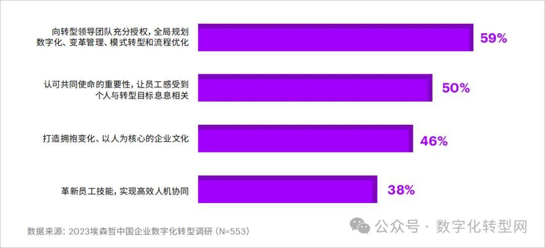 通过关注员工体验、激发员工潜力来培育变革主力军的方式行之有效。埃森哲研究显示,员工对工作有一些基本需求,例如,身心健康、经济状况良好;与团队关系紧密,拥有信任感和归属感;工作目标明确;掌握所需技能并追求事业发展。通过满足这些需求企业可释放员工三分之二的工作潜力,即使是在经济不稳定时期,仍能带来超过5%的收入增长。在此情景下,企业需要在整个组织内关注员工体验,以创新方式培养人才,从而增强员工的数字化能力。
