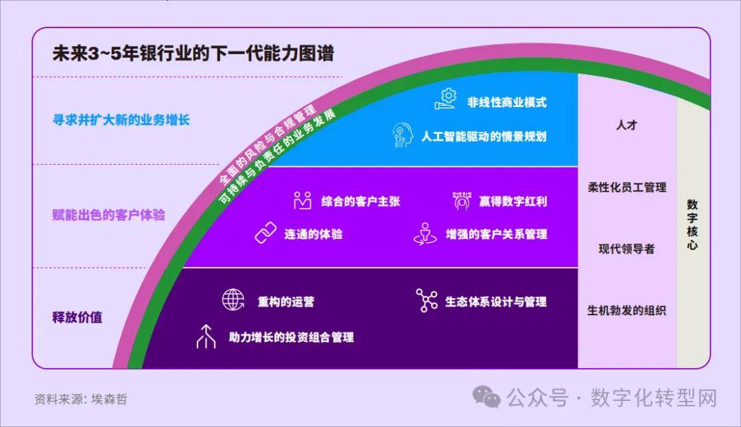 银行数字化转型全面深化,具有数字化理念和思维的人才无疑是极其关键的要素。但是全球银行业高管们认为,缺乏有执行能力的落地团队是完成重塑战略的最大挑战。中国的银行在人才招聘和选拔机制方面向来不如同样青睐金融科技人才的互联网行业灵活,尤其是中小银行,受限于地域和职业发展等因素更难吸纳和留住人才。未来,银行必然要加快变革的步伐,以抢占人才高地。而对现有人才的结构性优化和复合型能力培养将是银行发展人才的另一路径,银行需要加快以金融+科技的复合型人才标准重新建立人才画像和模型,对现有的人才资源进行盘点和优化,并且通过建立业务和科技融合的人才培养和提升机制,强化全方位的能力培训,最大程度激活现有人才的潜力,创造可持续发展的组织团队。