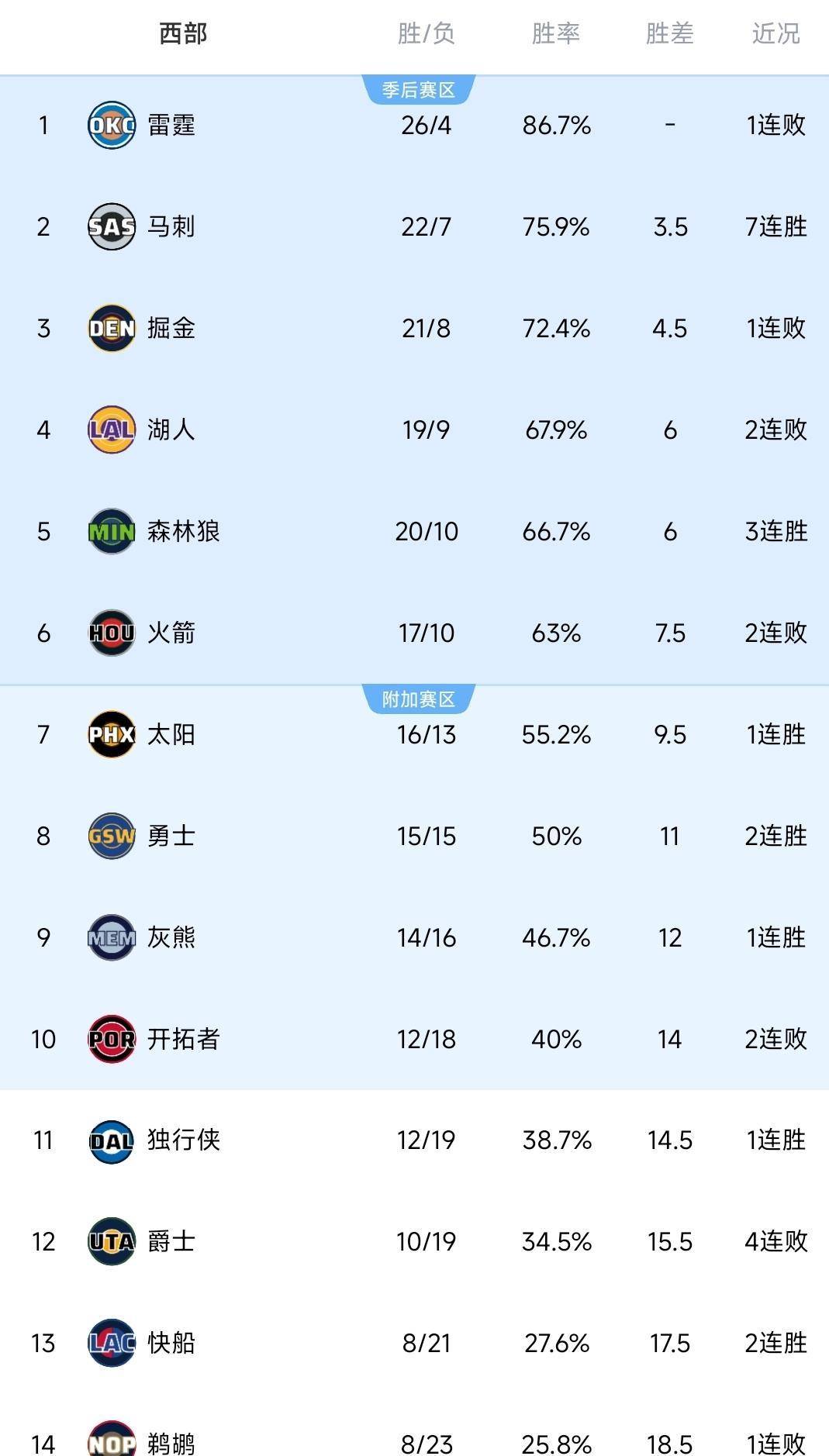 本场比赛的结果,也引起了西部排名的即时变动。 在快船队获胜的同时,其他场次也爆出冷门。 排名西部第一的俄克拉荷马雷霆队被圣安东尼奥马刺队击败,而洛杉矶湖人队也输掉了比赛。 此役过后,快船队的战绩变为8胜21负,凭借两连胜的战绩,他们从西部第十五位,也就是垫底的位置,上升到了第十三位,暂时摆脱了联盟倒数后三名的区域。 而火箭队的战绩则变成了17胜10负,虽然依然排在西部第六,但他们与身后第七、第八名球队的胜场差正在缩小,位置已经不再稳固。 丹佛掘金队依然位居西部第二,而湖人队则下滑到了第四位。 一场看似普通的常规赛,如同投入湖面的一颗石子,在西部纷乱的竞争格局中,漾开了一圈新的涟漪。