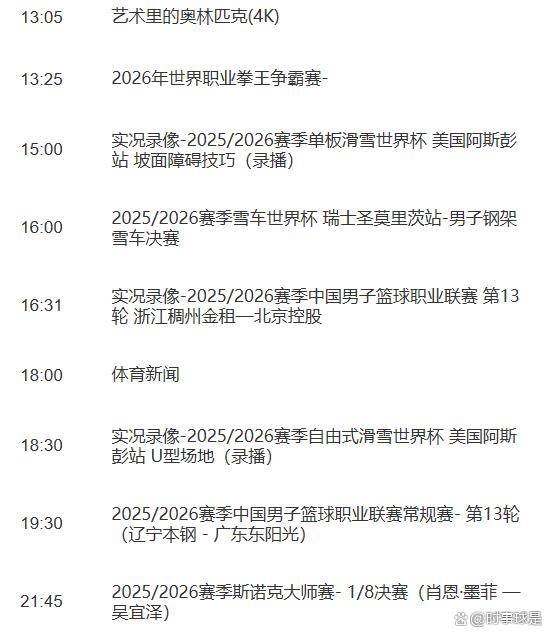 据悉,本场比赛将于北京时间1月11日19点30分(当地时间14点30分)开球。参考首轮比赛的转播情况,央视有望继续对本场比赛进行现场直播。然而,届时同一时间段还有CBA联赛常规赛以及中国排球超级联赛等赛事,这无疑给广大球迷和央视转播带来了选择的难题。截至1月9日中午12点,央视节目单显示,CCTV5体育频道将在11日晚直播CBA辽宁对阵广东的比赛,而CCTV5 体育赛事频道则将直播排超男子北京对阵天津的比赛。最终央视将如何安排转播,值得期待。