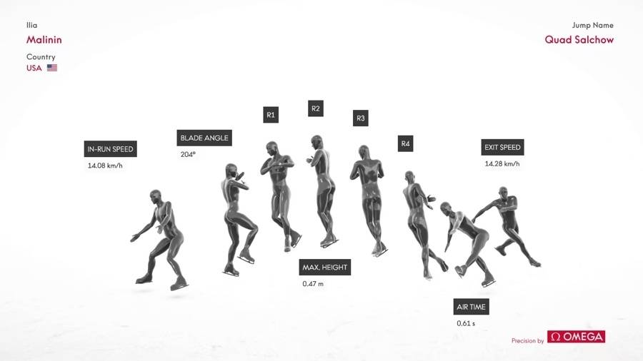 跳跃,是这套系统最具突破性的应用领域,也是花样滑冰技术分评判的核心。过去,裁判只能凭借经验来判断选手起跳是否有力、空中转体是否完整、落冰是否干净。诸如外刃还是内刃的争议,以及不足周数的细微偏差,往往藏在肉眼难以捕捉的瞬间。而如今,欧米茄的计算机视觉技术,能够提供详尽的技术分析,涵盖跳跃的高度、滞空时间、远度、旋转周数等关键数据。甚至,它还能清晰地捕捉到冰刀刀刃的角度和落点位置。正如欧米茄的工作人员所言,这一次,科技让裁判“看到了过去看不到的细节”。