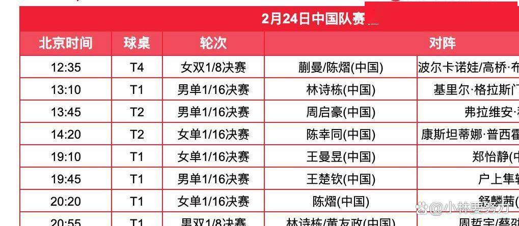 2026-02-25雨燕直播,NBA直播,世界杯直播,足球直播,台球直播,体育直播,世界杯,欧洲杯,苏超直播,村BA直播,苏超联赛,村超,村超直播今天国乒选手总共有8场比赛要打,涵盖了单打和双打项目。 比赛从中午12点35分开始,一直排到晚上接近9点。 第一场开打的是女双比赛,国乒组合蒯曼和陈熠将联手出战。 她们的对手是一对跨国组合,由奥地利的波尔卡诺娃和巴西的高桥·布鲁娜组成。 这场比赛被安排在中午12点35分,是今天所有国乒比赛中的第一场。 波尔卡诺娃是欧洲乒坛的老将,经验丰富,而她的搭档高桥·布鲁娜在单打项目上实力不俗。 这对组合是临时配对,但国际比赛经验都不缺,对于年轻的蒯曼和陈熠来说,这是她们在本届赛事双打项目的首秀,需要尽快进入状态,打好开局。